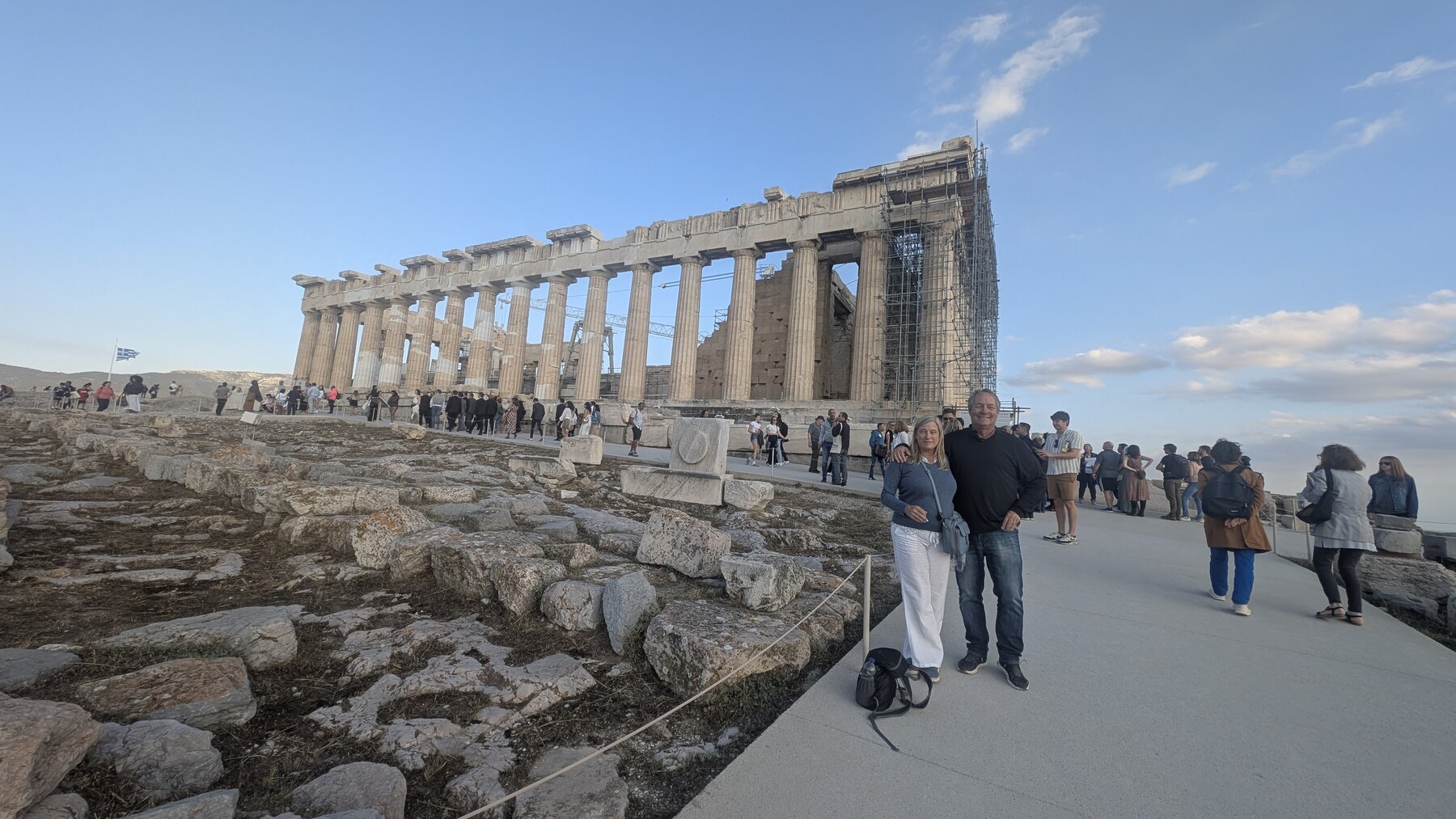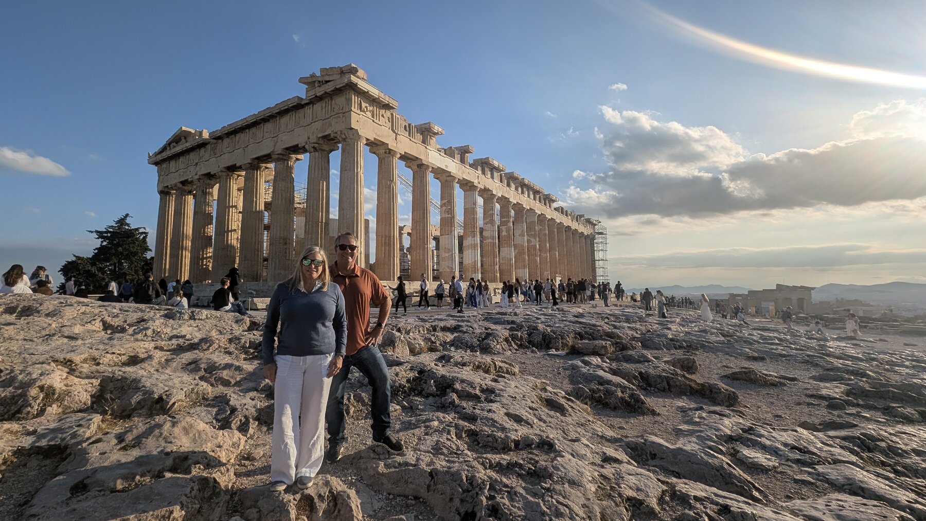 The Acropolis is the one site in Athens that requires no justification, but it does require a plan. Our guide recommended a 4-hour tour from 4–8pm. We used 3.5 of that easily; Rick Steves also recommends “end of day” both for fewer crowds and less heat. That 4 hours covered both the Acropolis museum — at the foot of the hill — and the Acropolis itself.