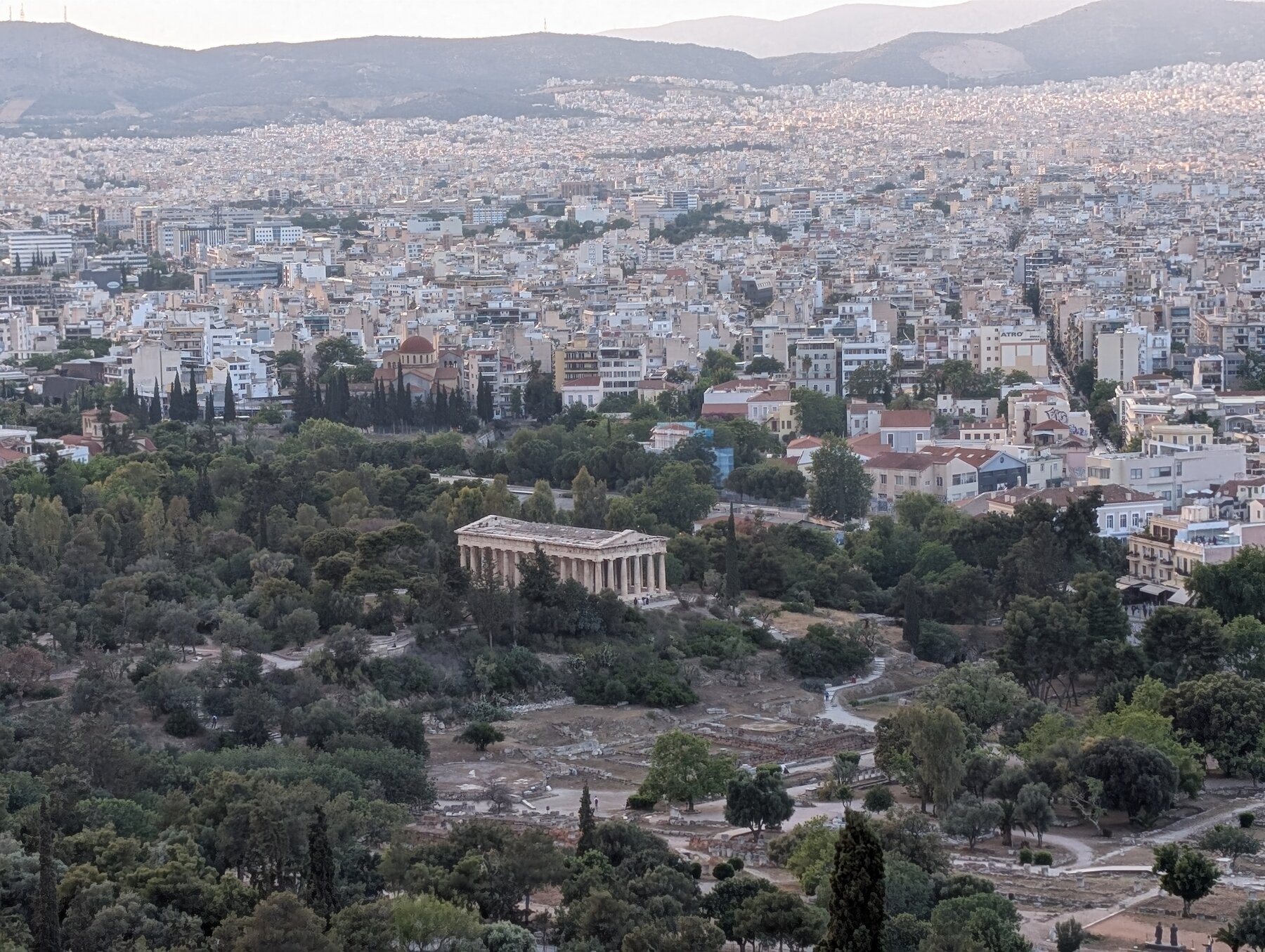 We missed the Tower of Winds entirely — a block away from the Agora, somehow overlooked. The Temple of Olympian Zeus we saw only from the Acropolis; it lies across an 8-lane road, and from above, the long-distance view felt like enough.