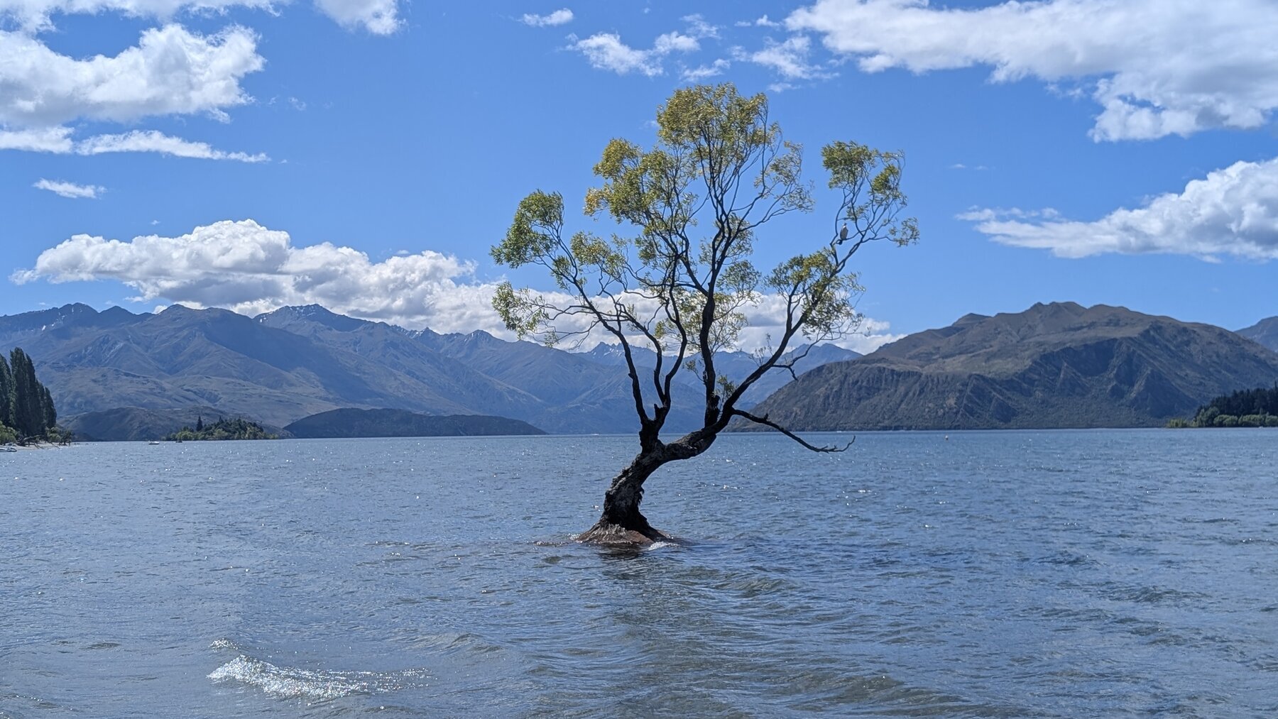 "That Wānaka Tree", some sources originally placed as a fencepost. Very photo-worthy spot in Lake Wanaka